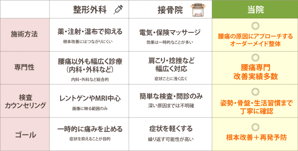 病院や整骨院と違うところ