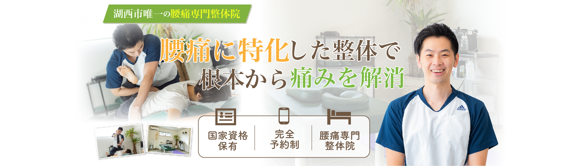 柔道整復師の国家資格を保有し腰痛施術歴10年以上ある院長が担当します。